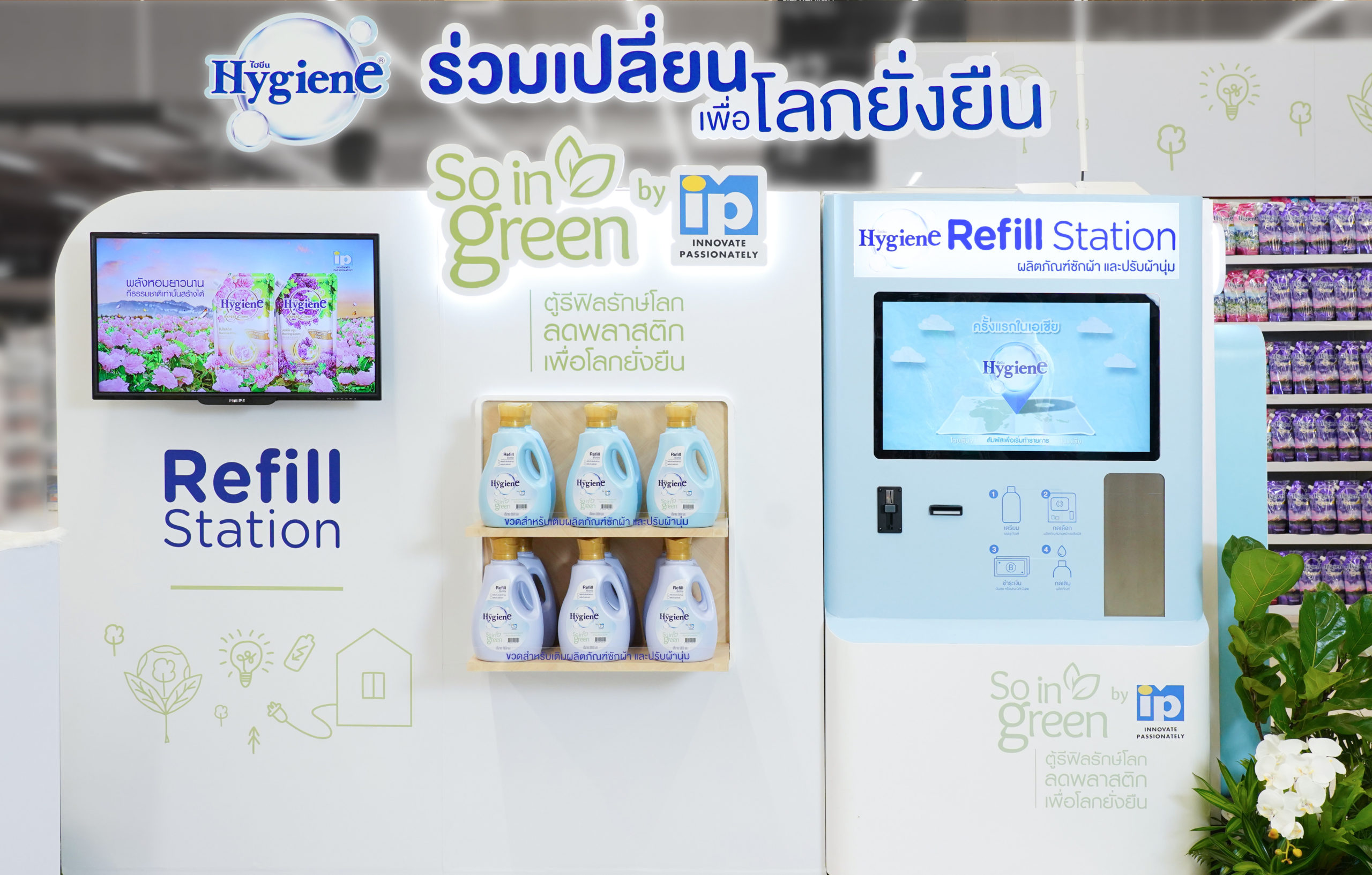 “We have no doubt that I.P. One’s ‘Hygiene So in Green’ project will be a success,” says Mr. Uthai Thanesvorakul, CEO of I.P. One, after seeing the initial market response. “Social responsibility is an important part of our company vision. Hygiene is the first brand in Asia to have used biodegradable materials for the production to produce fabric softener, which they have been using since 1989. This campaign elevates our vision for the world to another level by offering a simple solution to an important problem. We join hands with our partners like Liquibox to launch Hygiene refill stations with a mutual objective to change consumers’ behaviors and encourage them to opt for reusable containers instead of single-use plastic fabric softener bottles. This is part of our effort to reduce a massive amount of plastic waste in the future.”